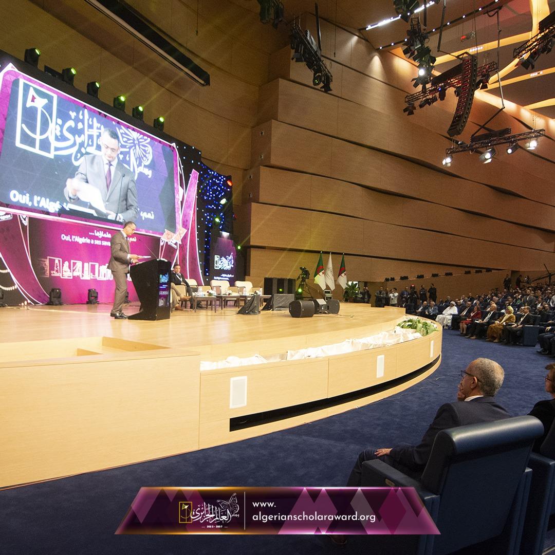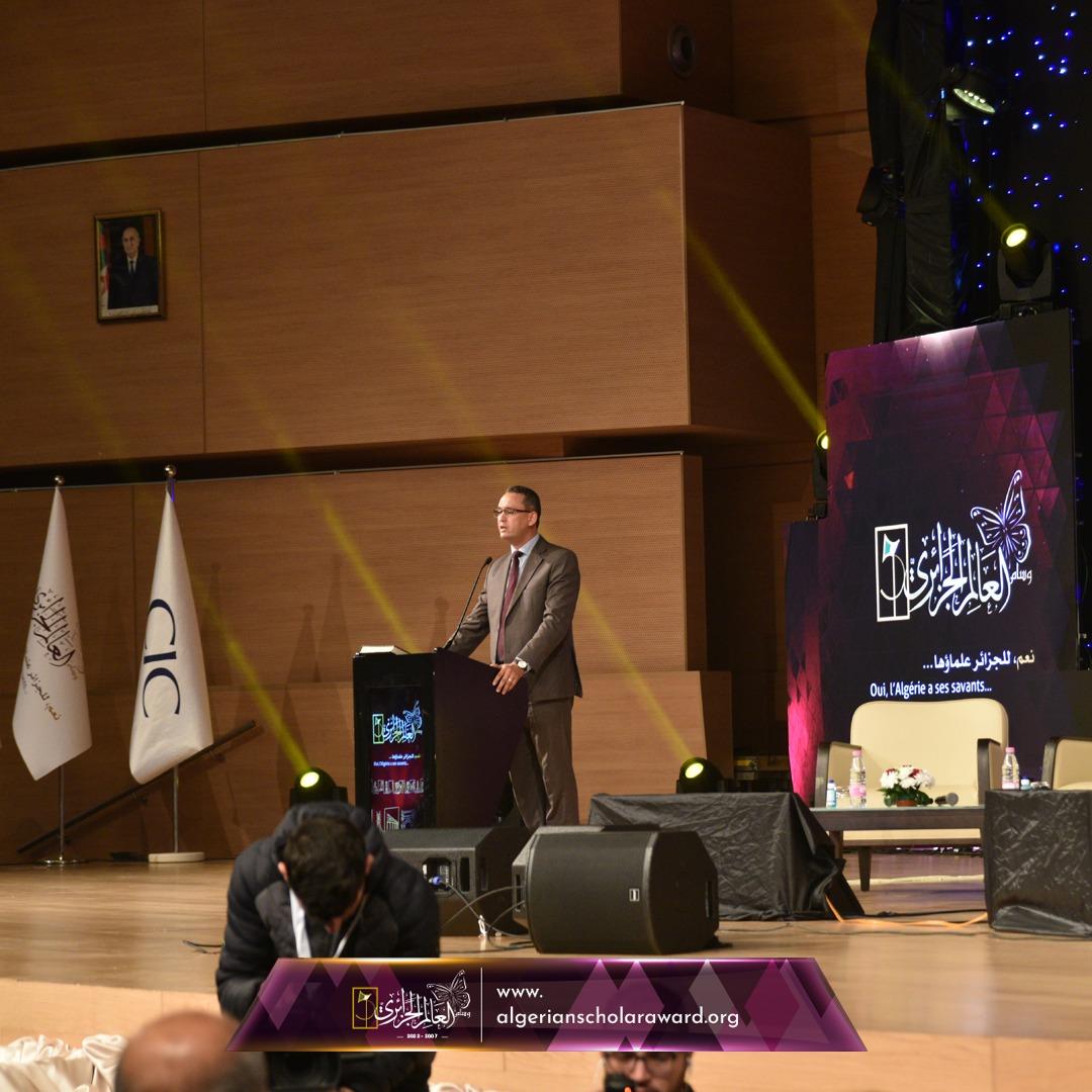 الإعلامي الفاضل : قاسم باحماني الراعي منشط الحفل في كلمة ترحبيبة افتتاحية موضحا فيها أهداف وسام العالم الجزائري ومشيدا بالوطن الأبي الذي ما فتأ ينجب العلماء والنوابغ ، ثم شاهد الحضور فيديو تعريفي لكرونولوجيا الوسام منذ تأسيسه بكلمات ملهمة قوية للعلماء المتوّجين في مختلف الطبعات السابقة.