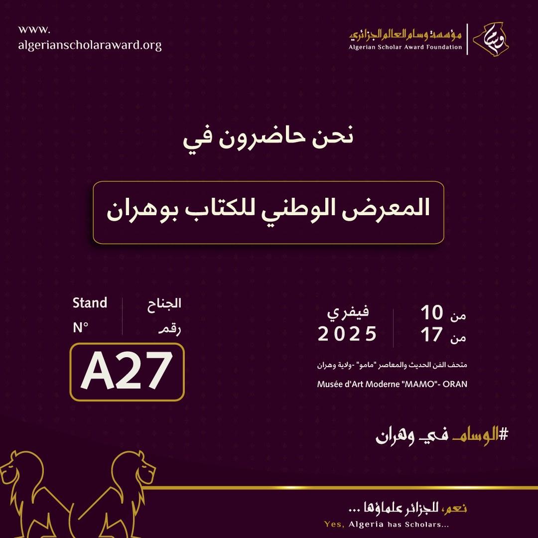 شاركة مؤسسة وسام العالم الجزائري في المعرض الوطني للكتاب بوهران، ضمن تظاهرة ثقافية مميزة تجمع عشاق المعرفة تحت شعار: "الباهية تقرأ".