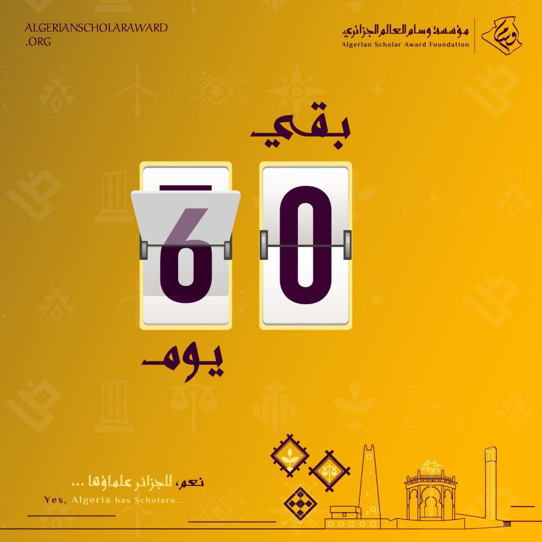 بدأ العدّ التنازلي... ستون يومًا فقط تفصلنا عن حفل تكريم عالم الجزائر في طبعته السادسة عشرة، احتفاءً بمن نذروا أنفسهم للعلم، واتخذوه همًّا ورسالة، فكانوا خير سفراء للجزائر حيثما حلّوا.