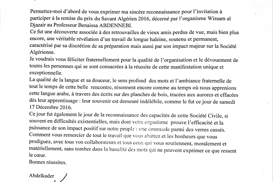 مراسلة عبد القادر خلادي بتاريخ 28 ديسمبر 2016