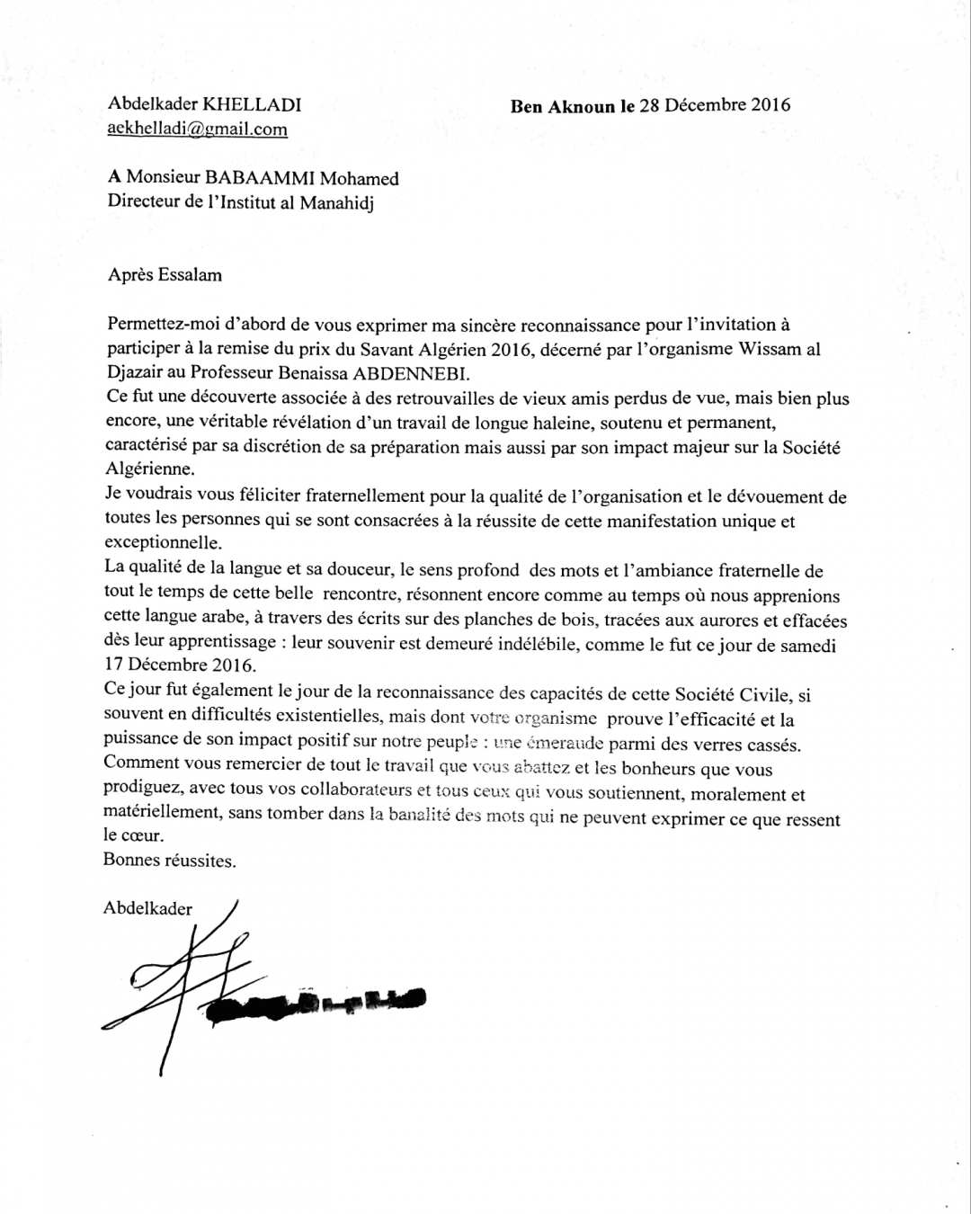 خصّنا ببضع كلمات بعدما حضر للمرة الأولى حفل تكريم عالم الجزائر لسنة 2016 وبقي وفيّا كما عهدناه حتى غادرنا.