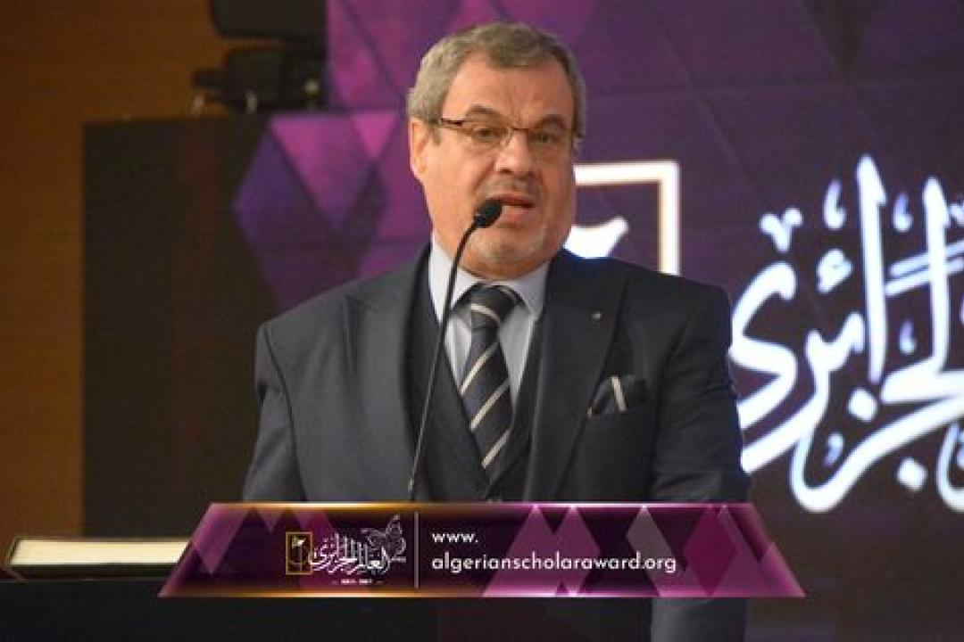 كلمة السيد محمد بوشناق خلادي، رئيس المجلس الوطني الاقتصادي والاجتماعي مشيدا بجهود القائمين على مؤسسة وسام العالم الجزائري. President of the National
